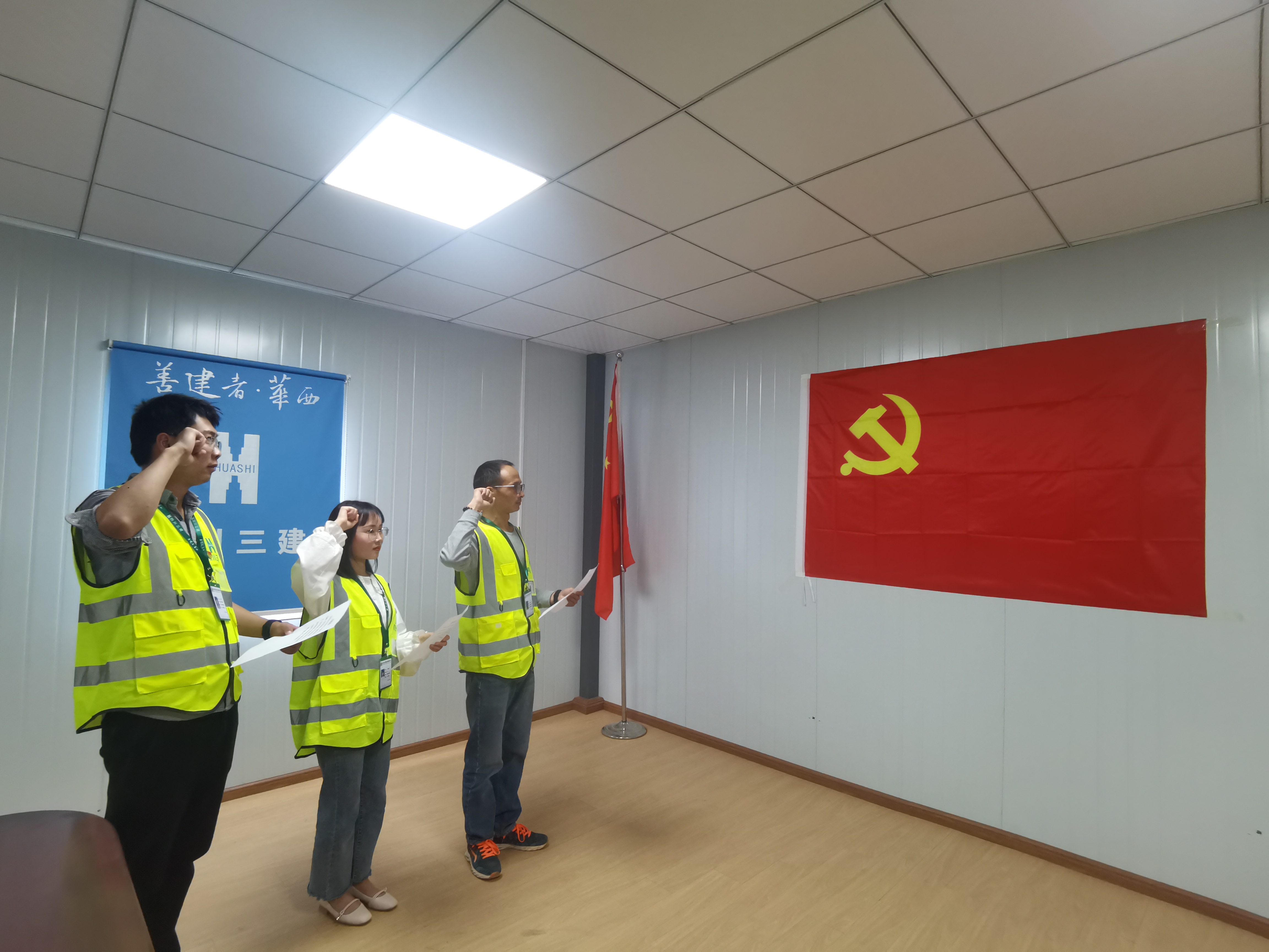 最后,项目部全体党员佩戴党徽,面向党旗,高举右手,庄严宣誓。党员同志们纷纷表示,将永远牢记党的宗旨,遵守党的章程,履行党员义务,以更加饱满的热情投身工作,切实发挥党员先锋模范作用,永葆党员政治本色。