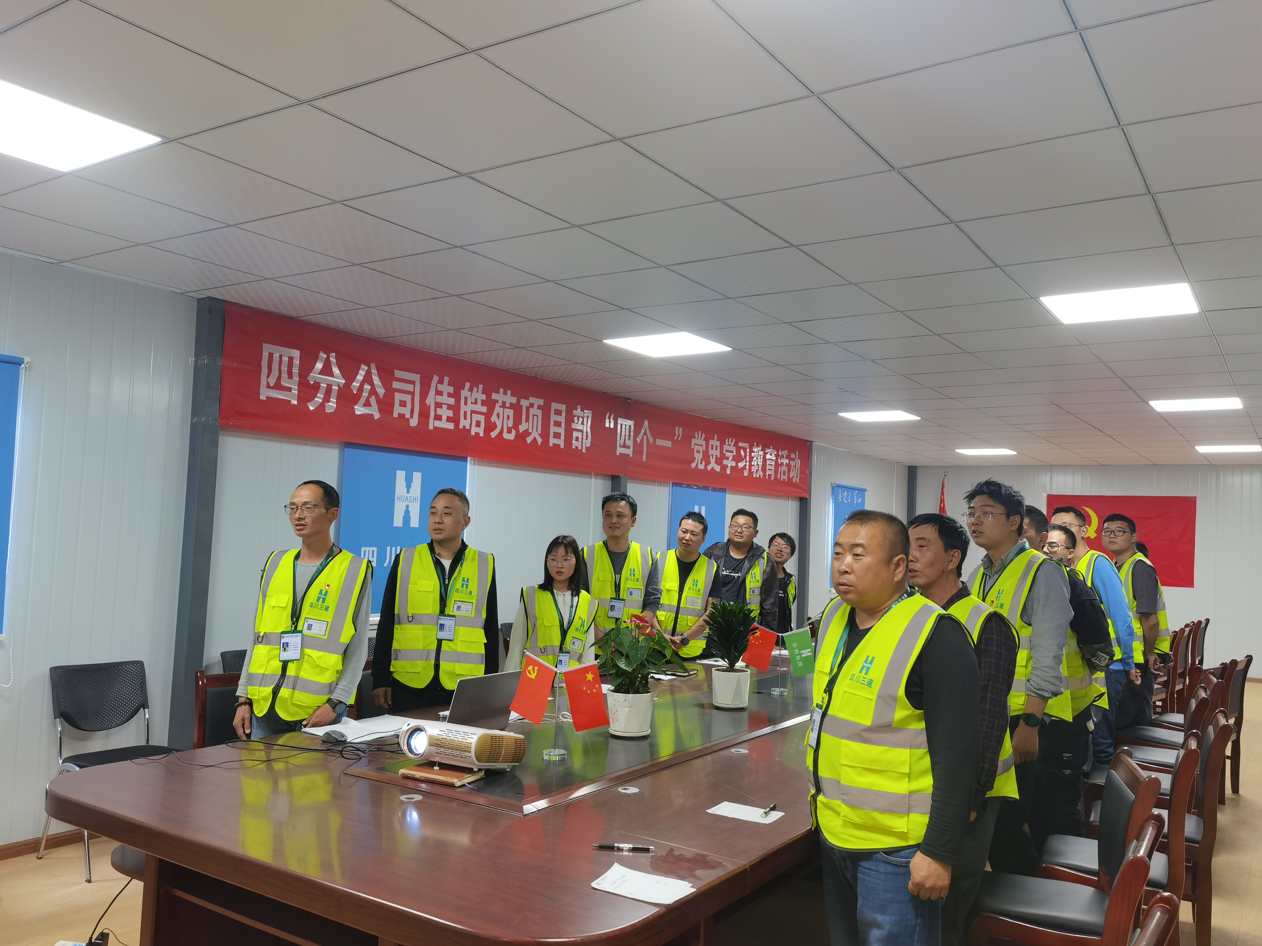 为纪念中国共产党成立100周年,全面贯彻落实习近平新时代中国特色社会主义思想和党的十九大精神,按照公司党委关于党史学习教育的总体安排部署,切实激发四分公司佳皓苑项目全体党员、职工的爱国爱党之情,4月9日,佳皓苑项目党支部组织开展“四个一”党史学习教育活动。