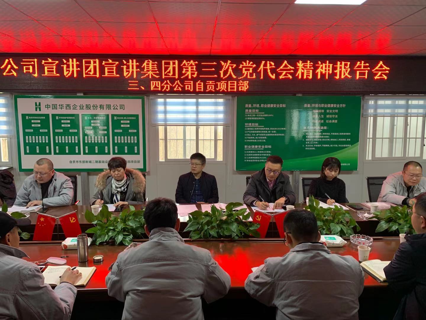 为深入学习贯彻集团第三次党代会精神,引导公司全体党员干部职工深刻领会集团第三次党代会的重大意义、指导思想、奋斗目标和“8795”战略部署,进一步统一思想、提振信心、担当作为,在集团实现“千亿华西”和迈进“世界五百强”的征程中贡献三建力量,公司党委成立以党委书记、董事长刘春同志为团长,公司领导班子成员、出席集团第三次党代会的党代表为成员的“宣讲团”。近期,13名宣讲团成员去单位、进项目、入车间,对集团第三次党代会精神进行多角度、全方位、深层次宣讲传达。