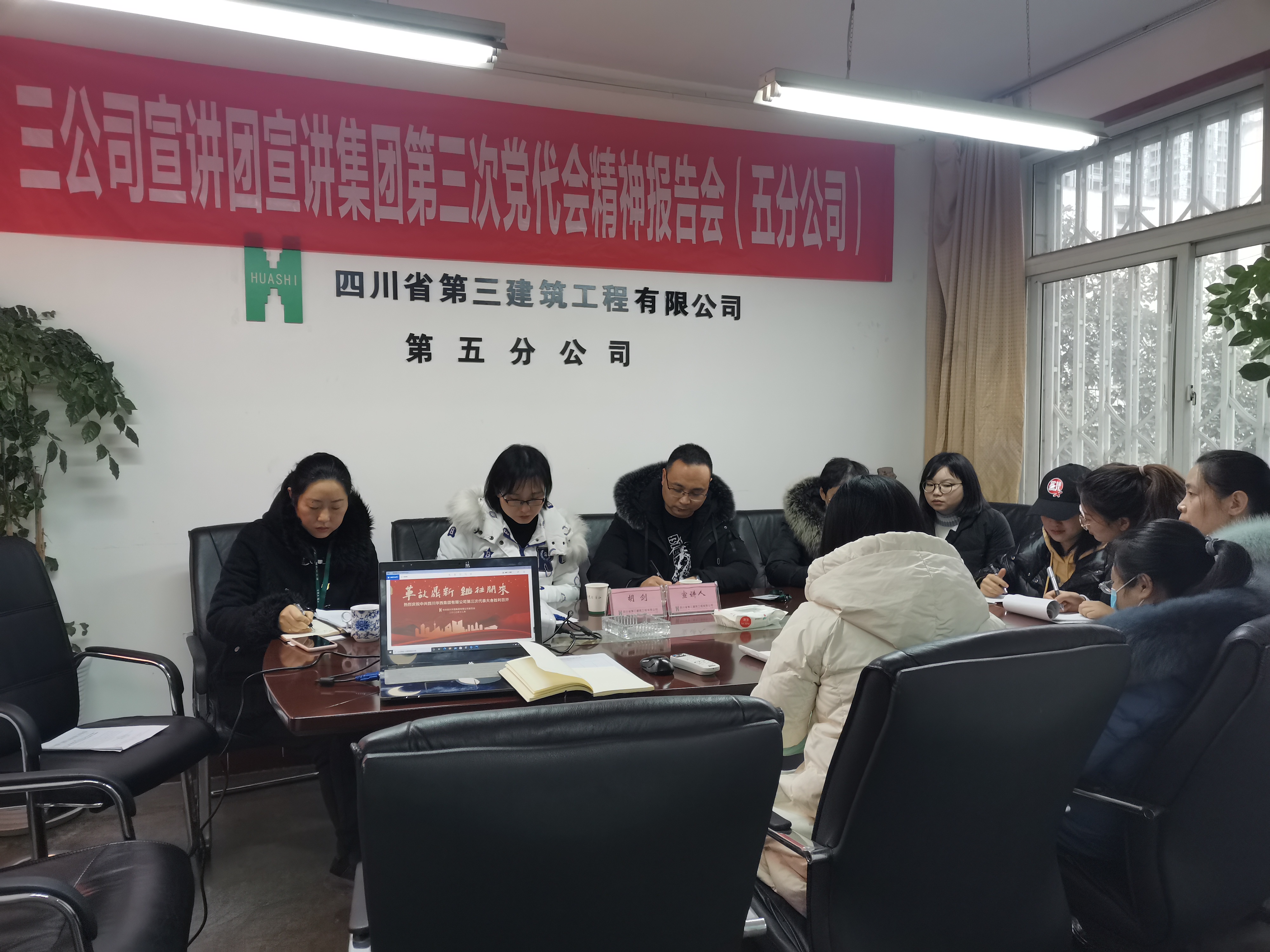 (文/李彩虹图/朱雯雯)为深入、细致、全面学习贯彻集团第三次党代会精神,公司宣讲团成员、总经理、总工程师罗骥带领第一分公司、第二分公司班子成员和干部职工共计30余人学习集团第三次党代会精神。