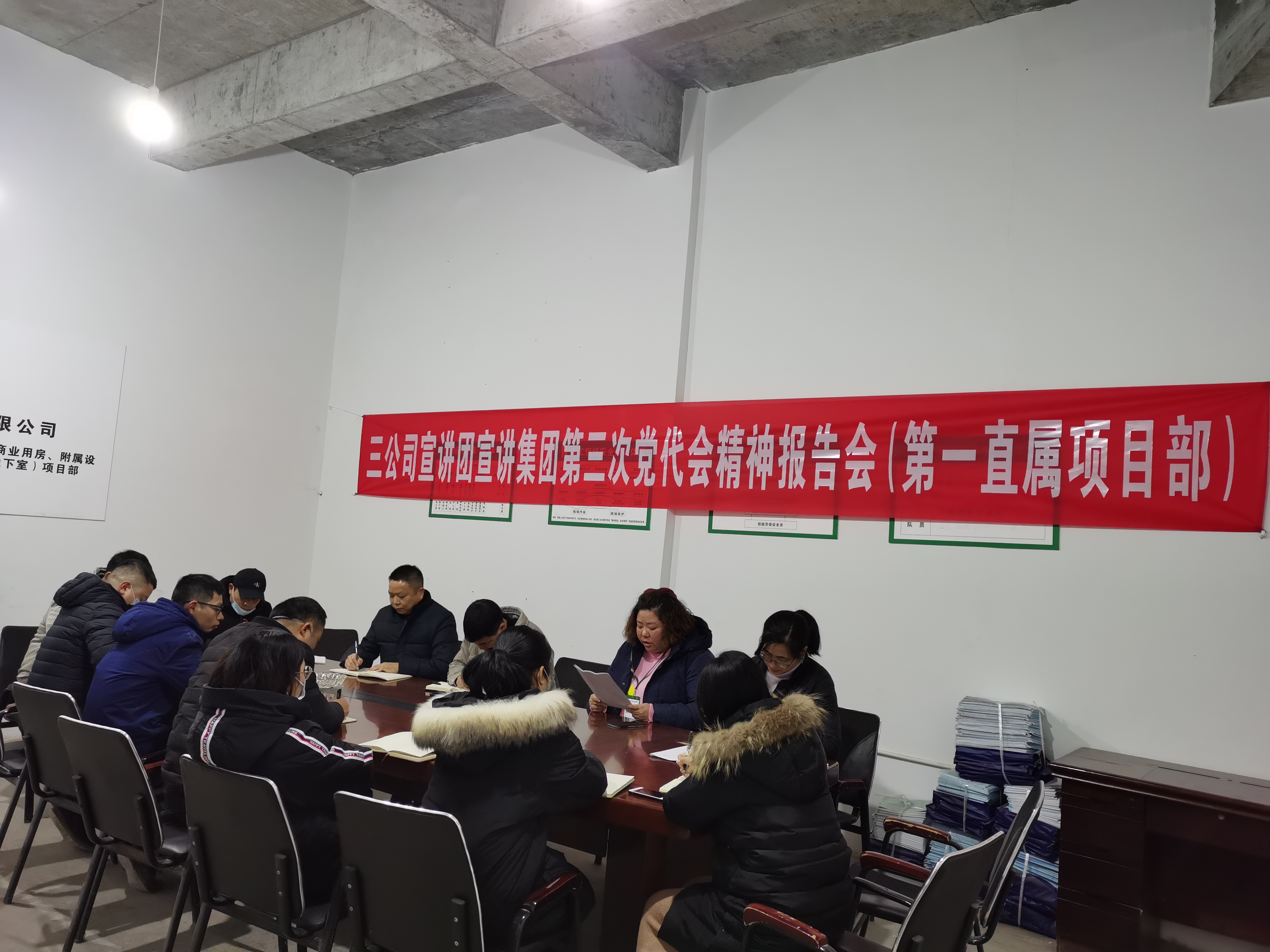 (文/李小华 图/梁洋)公司宣讲团成员、财务部主管冯杨到第一直属项目管理部宣讲集团第三次党代会精神,第一直属项目管理部全体职工参加宣讲会。