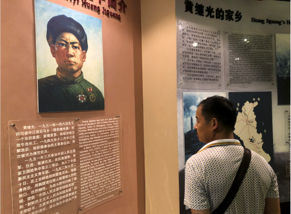 纪念馆里,大家在解说员的带领下参观了各个展厅,在这里大家看到了珍贵的文物和文献资料,重温了志愿军同朝鲜人民并肩作战打败美帝侵略者的英雄伟绩,深入了解到英雄黄继光的感人事迹以及那段壮烈的战斗历程。在上甘岭战场馆,面对黄继光布满弹孔的军衣,大家的心灵受到极大震撼,从一件件珍贵革命文物,到一张张感人的历史图片,英雄人物的光辉事迹深深地感染着大家,让大家接受了一次深刻的思想教育和灵魂洗礼,切实体会到今天的和平生活来之不易。