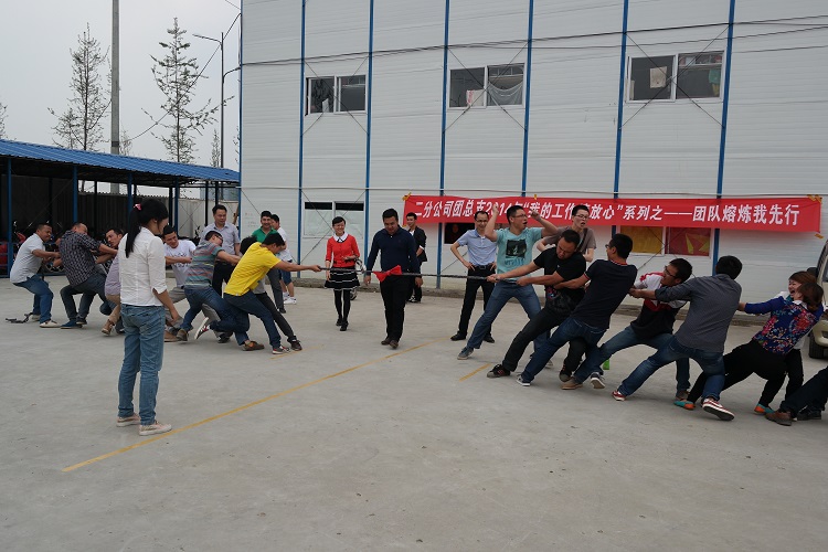 “加油!加油!”二分公司南湖逸家项目部传来了震天的呐喊助威声,只见工地停车场上,拔河绳两边的青年员工们双脸涨的通红,正卯足了劲的进行着拔河比赛。比赛激烈异常,引得众多劳务人员都不禁驻足观看。二分公司团总支《我的工作请放心系列之团队熔炼我先行》主题团日活动以这样精彩纷呈的方式拉开了序幕。公司团委负责人,分公司党总支负责人,青年职工代表共计50余人参加了此次活动。