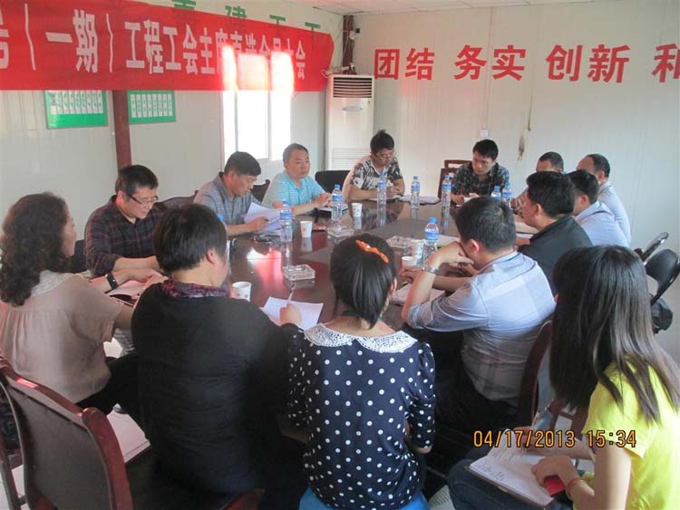 &2013年4月17日下午,公司工会主席郭俊清一行在重庆分公司班子成员的陪同下,赴双赢·滨江一号项目部,指导该项目部工会主席直选会议,并为项目部并慰问项目一线职工。