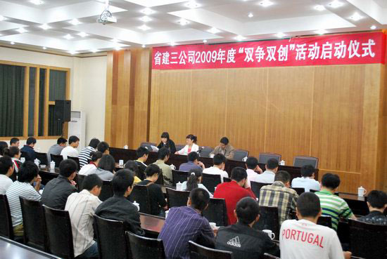 上午9:30,公司2009年度“双争双创”活动启动仪式在毛家湾会议厅举行。工会郭俊清主席代表公司领导到活动现场看望了青年代表,并在“双争双创”启动仪式上做了重要讲话。他提出青年团员要勇于进取、开拓创新,争当先进集体和个人,为公司生产、经营和管理水平的提高而努力奋斗。他要求在集团和公司面临新的形势和任务下,青年团员们要与企业共迎挑战、共渡难关,在促进企业发展的进程中实现自己的人生价值。最后,几位“双争双创”的先进代表也上台发言,与大家一起分享了他们成长的经历和成功的经验。先进典型的事迹极大的鼓舞和激励了青年们,大家纷纷表示要以他们为榜样,锐意进取、奋勇前进,为公司再创辉煌作出自己应有的贡献。