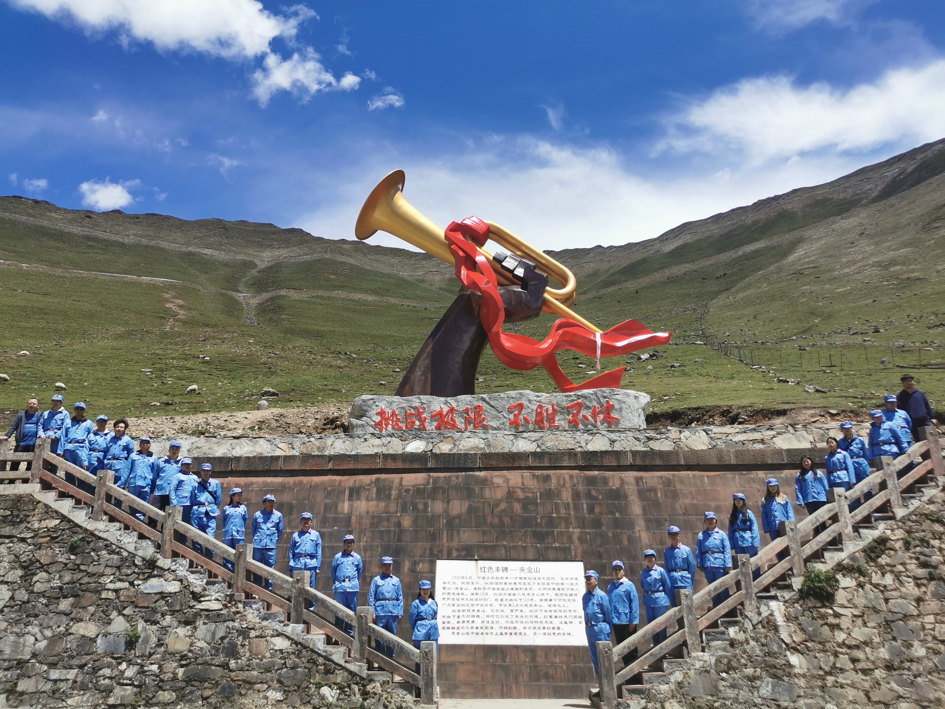 宝兴夹金山海拔4100余米,是红军长征翻越的第一座雪山,山上终年积雪,空气稀薄,在红军长征翻越夹金山纪念馆里,青年团员们通过物件、照片、老一辈革命家的回忆录等生动了解到那段艰苦卓绝的斗争岁月,通过与历史近距离对话,更加深刻地体会到红军长征时期的壮烈与艰辛。青年团员参观了陈云出川史实陈列馆和陈云长征驻地,感受了中央红军长征的革命历史以及陈云出川的艰险历程,对老一辈革命家的大无畏革命精神充满了敬仰。站在红军烈士纪念碑前,青年团员们庄严地举起右手,重温入团誓词,向烈士们敬献花篮,集体肃立默哀,表达青年们对革命烈士的崇高敬意。