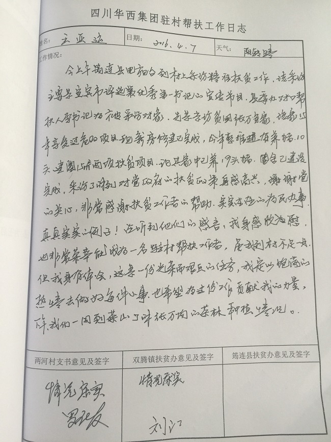 今天上午筠连县电视台到村上采访“精准扶贫”工作开展情况,该采访是宜宾市评选优秀第一书记的宣传内容。县委办对口帮扶人李书记为被宣传对象。我们先走访贫困户张万均家,该家庭2015年享受有危改项目现新房修建已完成,今年整村推进扶贫项目有养猪10头,建圈15㎡两项。现其家中已养19头,圈舍建设完成。通过采访,张万均告诉记者,他对党和政府的扶贫政策十分高兴,他谢谢党的关心,非常感谢扶贫工作者的帮助,感谢他们实实在在的为老百姓办事。随后,我了解到其老母猪前些天丢了,李书记及时打电话询问保险公司是否有所赔偿;随后,我们走访四组罗老四在建养猪场现场,罗老四不是贫困户,但其本人是残疾人,针对这种残疾人搞产业发展的,政府应予以大力支持。因此李书记当时就咨询残联有无相关政策资助。通过这次的采访,我听到贫困户出自内心的感谢之情,心里真的很温暖,我将认真做好驻村帮扶工作,像这位李书记一样,为村民做好每一件小事,为双河村贡献我的力量!