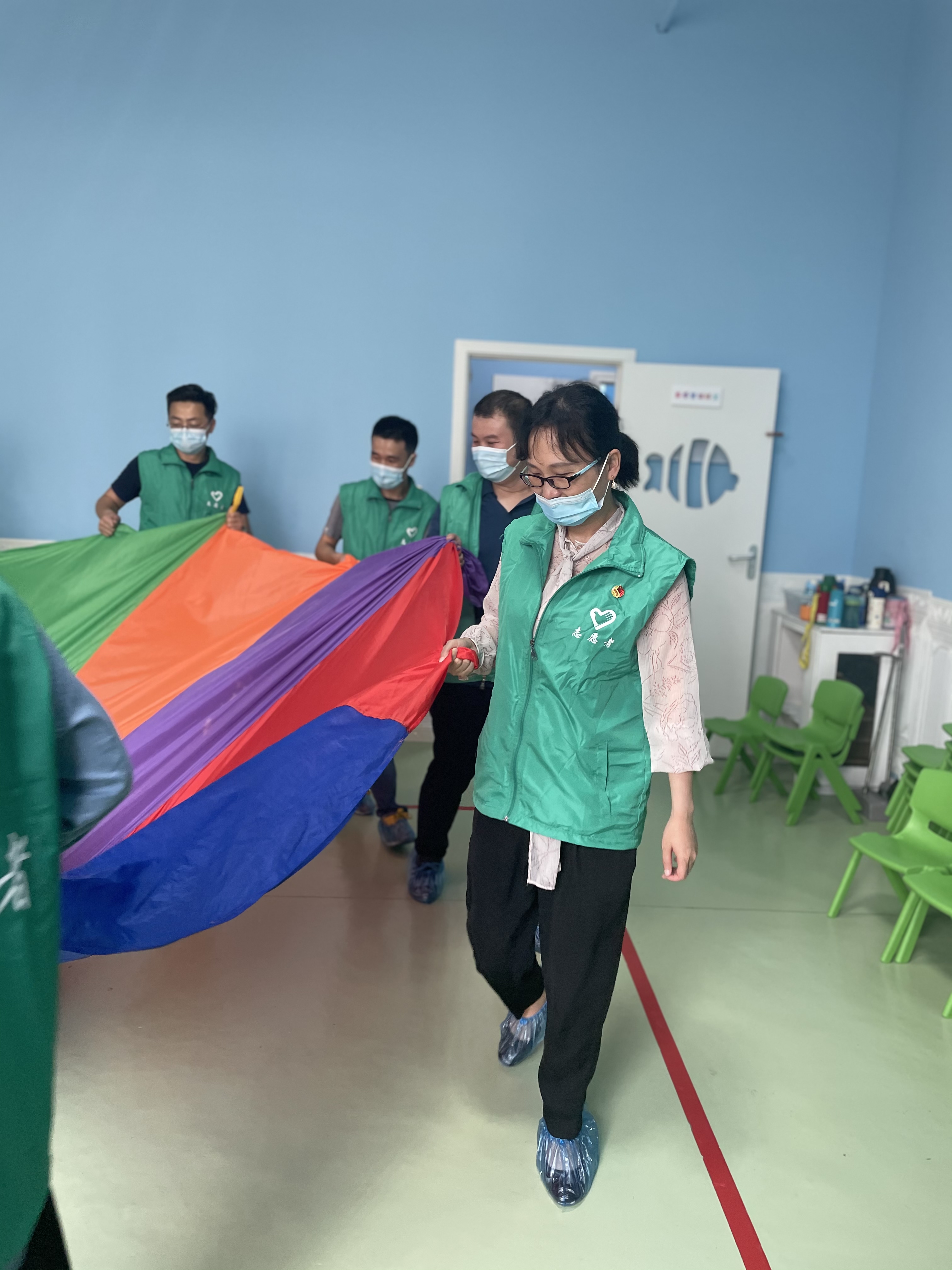 活动从科普自闭症儿童的视频开始,旨在让大家感同身受自闭症孩子的世界,包括自闭症患儿的形成原因、分布数据、日常生活方式、具体的表现行为以及生活中的困难等,装饰公司志愿者服务队深切体会到自闭症儿童所面临的困境。为了更加深入地走进他们,在心爱馨融家园老师的指导下,志愿者服务队与孩子们一起上课,并共同完成课程中的活动。