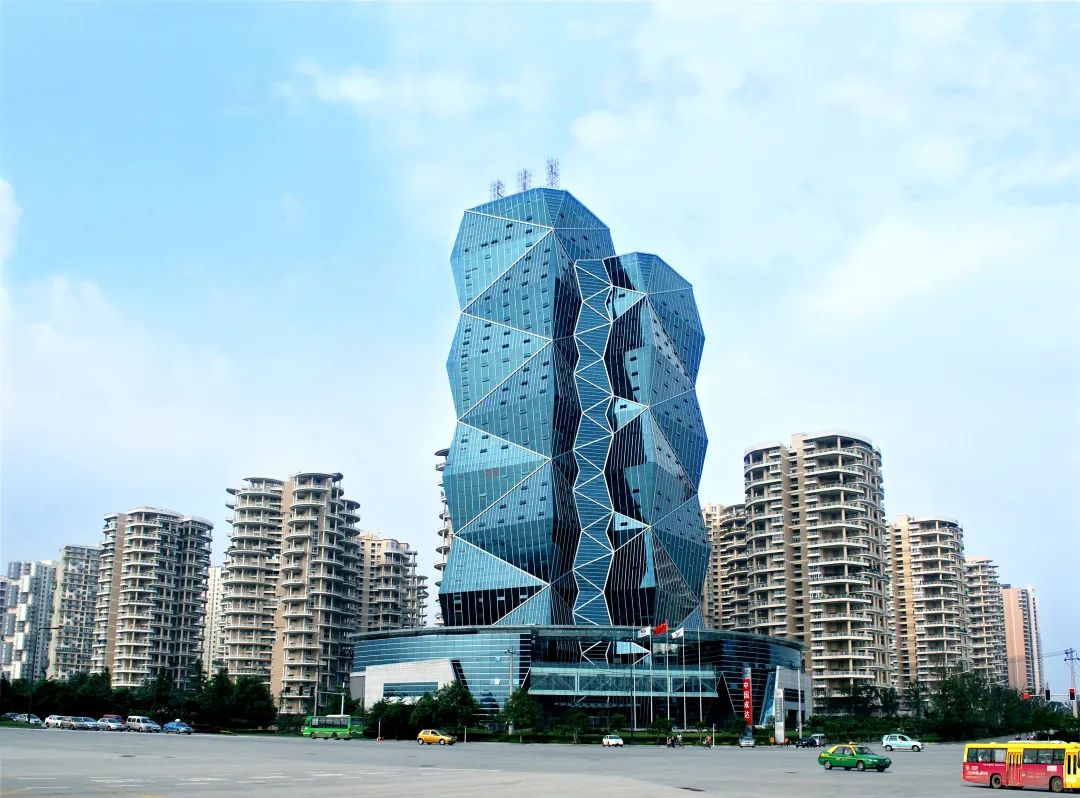 成达大厦位于成都新国际会展中心,楼高145米,是成都第一座外立面不规则的建筑,奇特的外形让人过目难忘。项目建筑面积7.5万平方米,混凝土框架与钢结构,地下3层,地上34层。