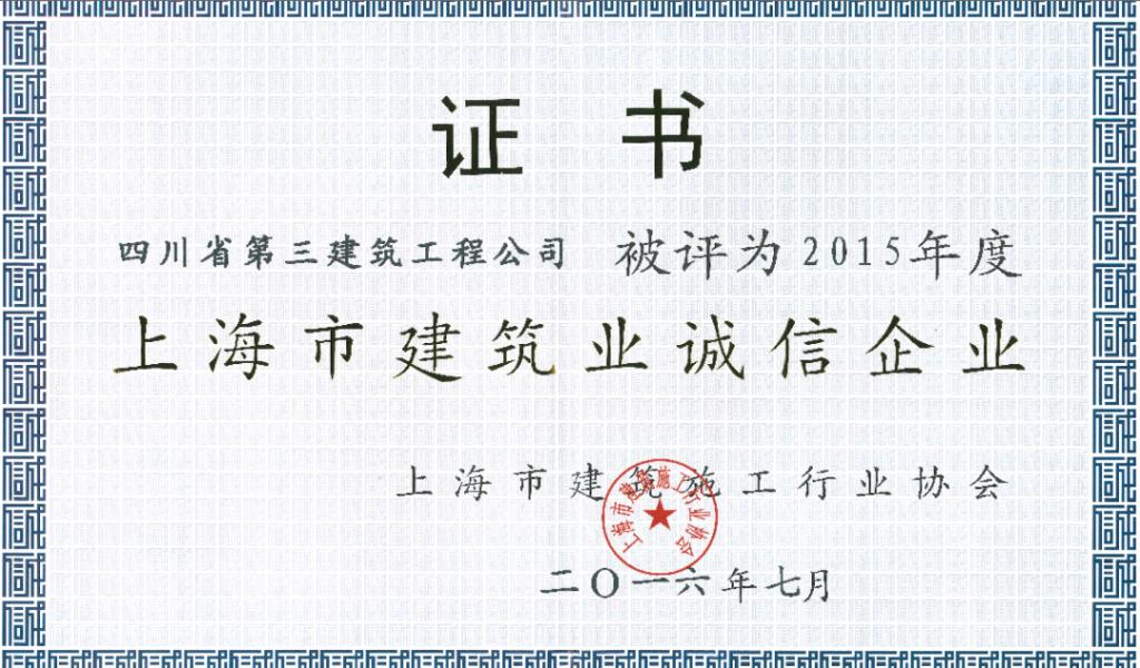 同期,公司获得“四川省企业技术中心”“上海市建筑业诚信企业”等荣誉称号。