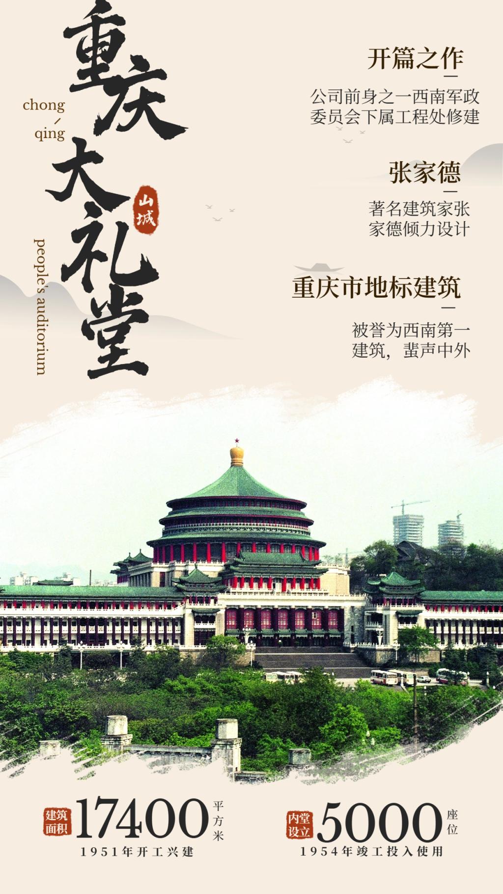 在修建重庆人民大礼堂期间,公司老一辈的技术人员和技术工人联合攻关,解决了上百项技术难题。刀削、斧砍、手锯、肩扛、背磨,三建前辈们矢志不渝,造就了重庆大礼堂的建设佳话。