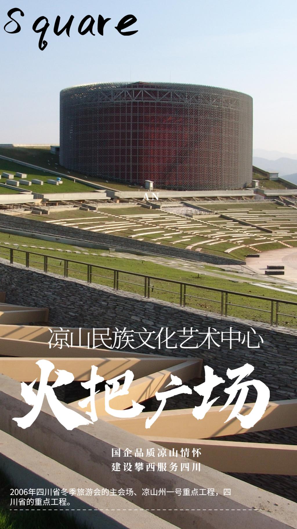 凉山民族文化艺术中心火把广场位于西昌市,是2006年四川省冬季旅游会的主会场、凉山州一号重点工程,四川省的重点工程。