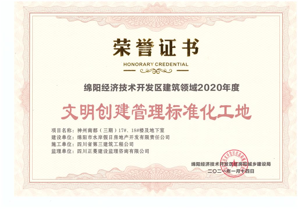 其中,澳维·天下乐城评为安顺市“虹山湖杯”优质结构工程,图腾·海博春天中心广场被评为 “ 全国安全生产标准化工地”,锦江大礼堂维修加固工程中使用的“砖砌墙体的加固结构”获得国家实用新型专利。