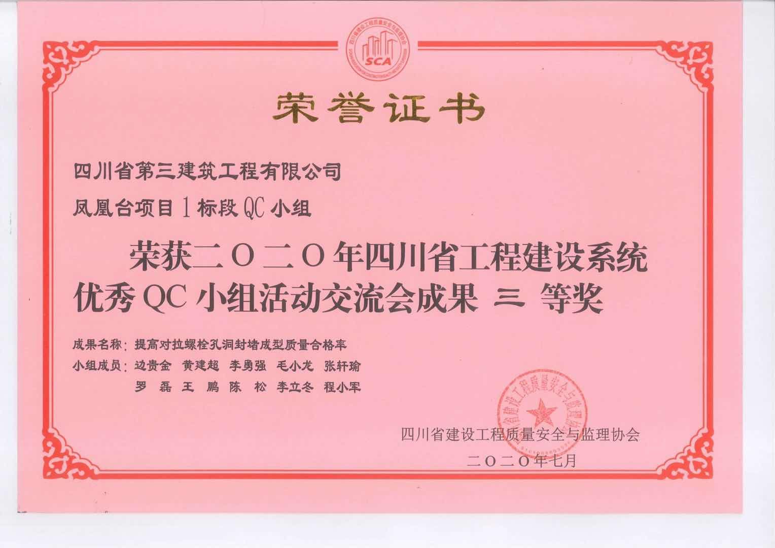 近年来获得市优质结构工程3项、省级优秀QC成果4项、市安全文明标化工地6项,开展市级质量观摩活动2次,多次迎接市级观摩团参观考察。其中,在2022年通过精心组织、科学施工保障了泽京铂宸万达广场如期开业,获得甲方多封优质履约感谢信;凤凰台项目在安全质量、现场环境等重点工作上全面发力,获得“2022年南充市安全生产文明施工标准化工地”荣誉称号。