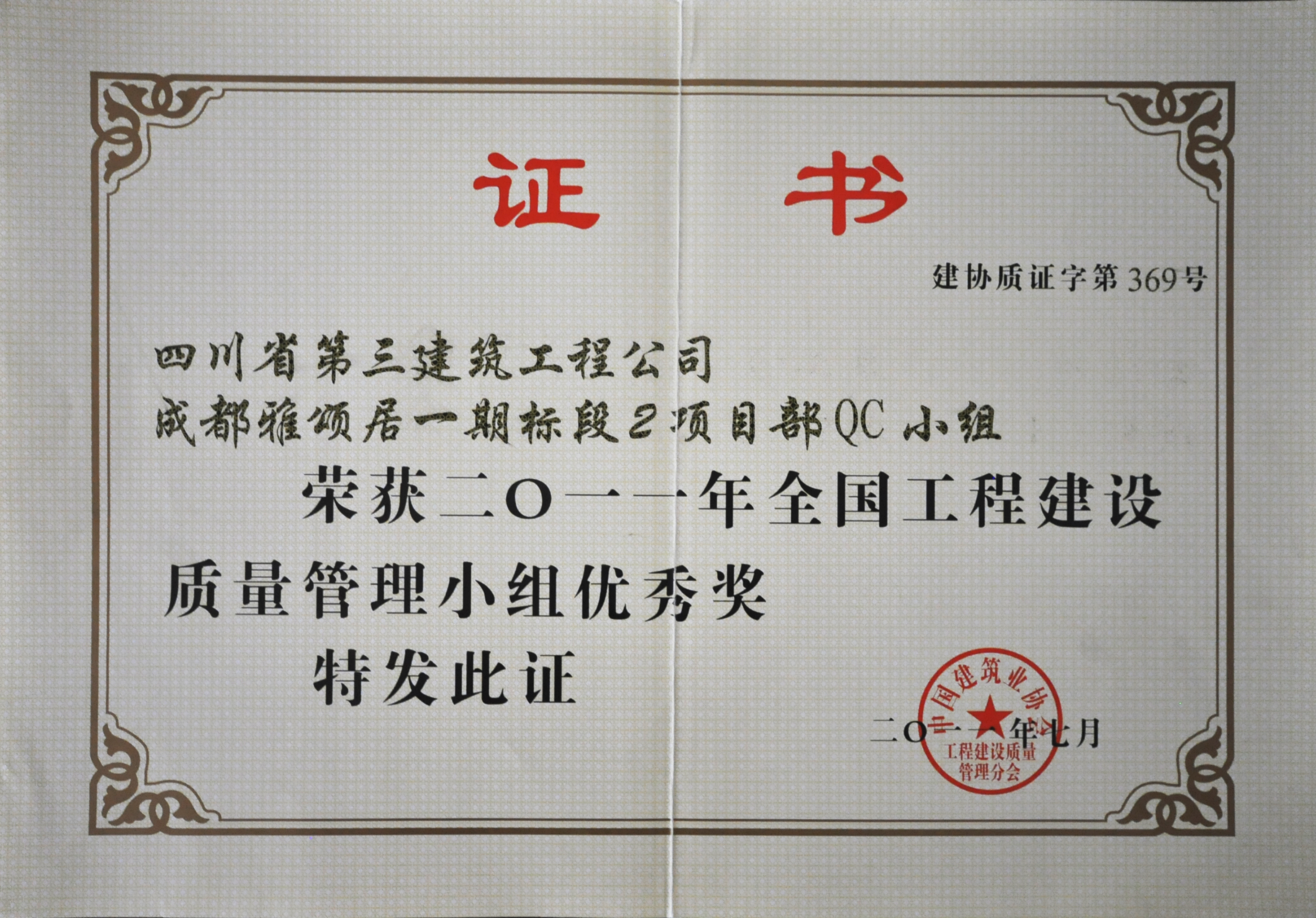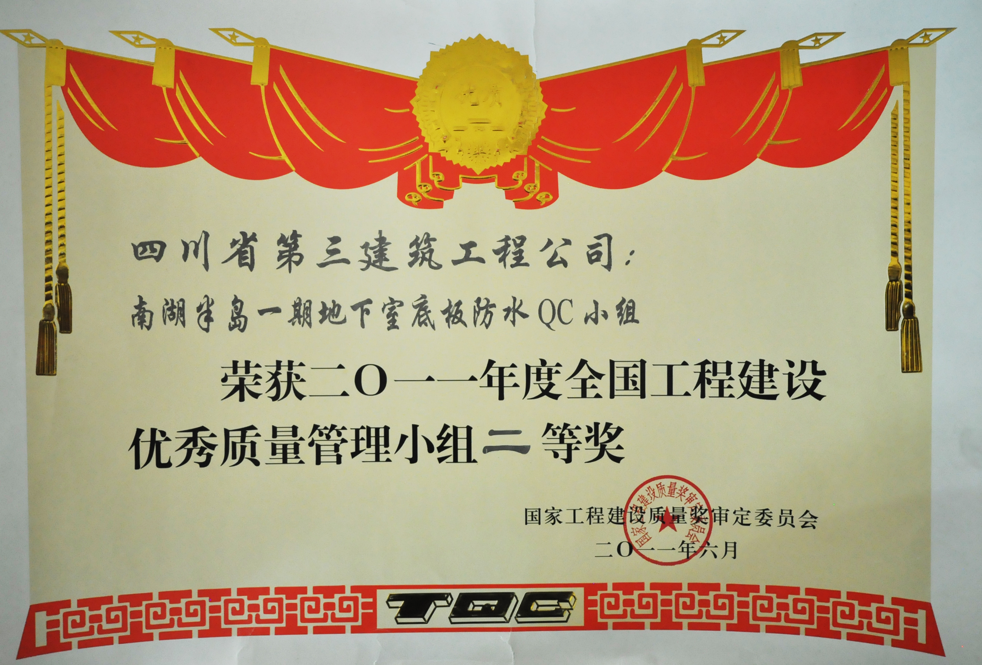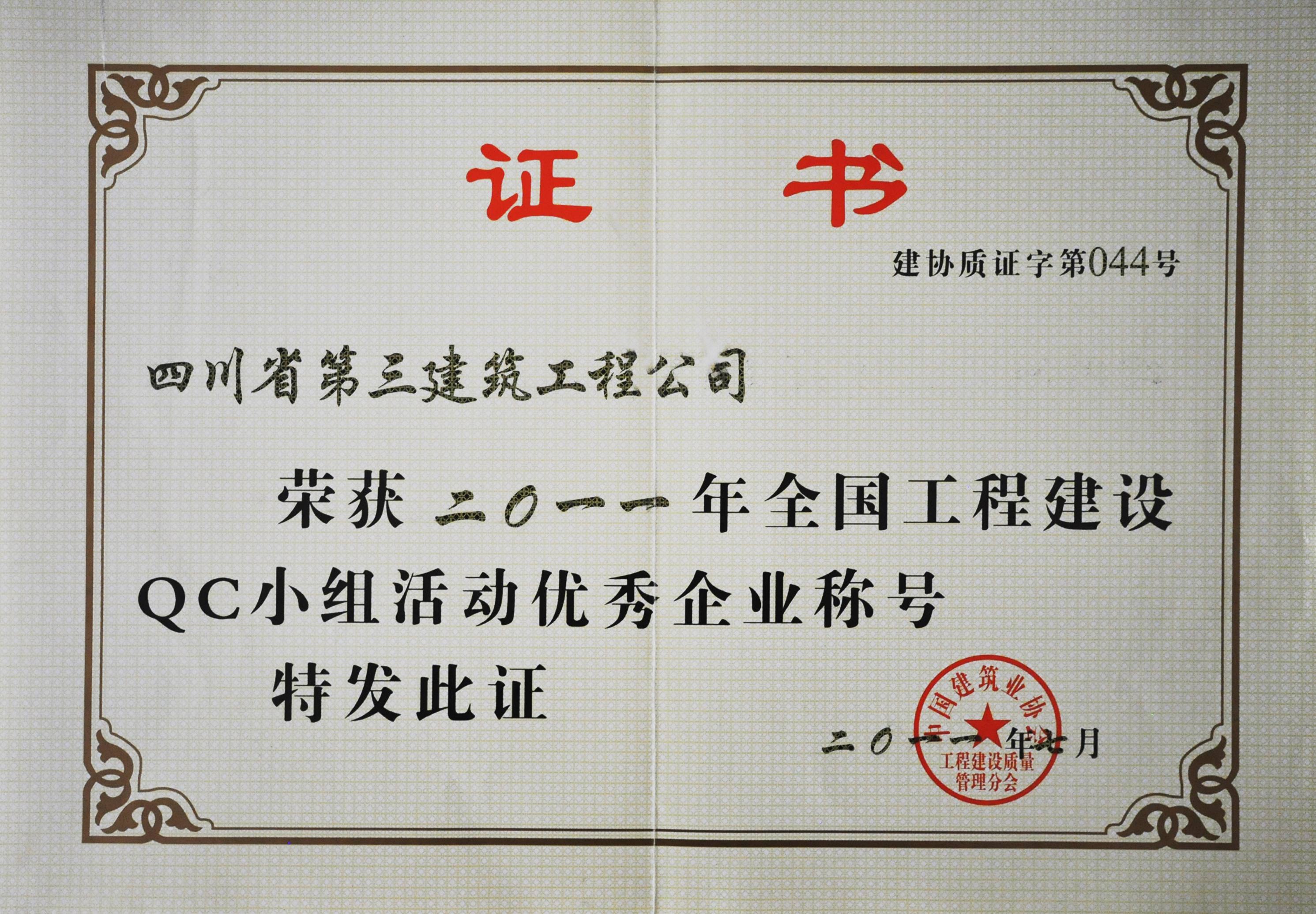 荣获2011年全国工程建设QC小组活动优秀...