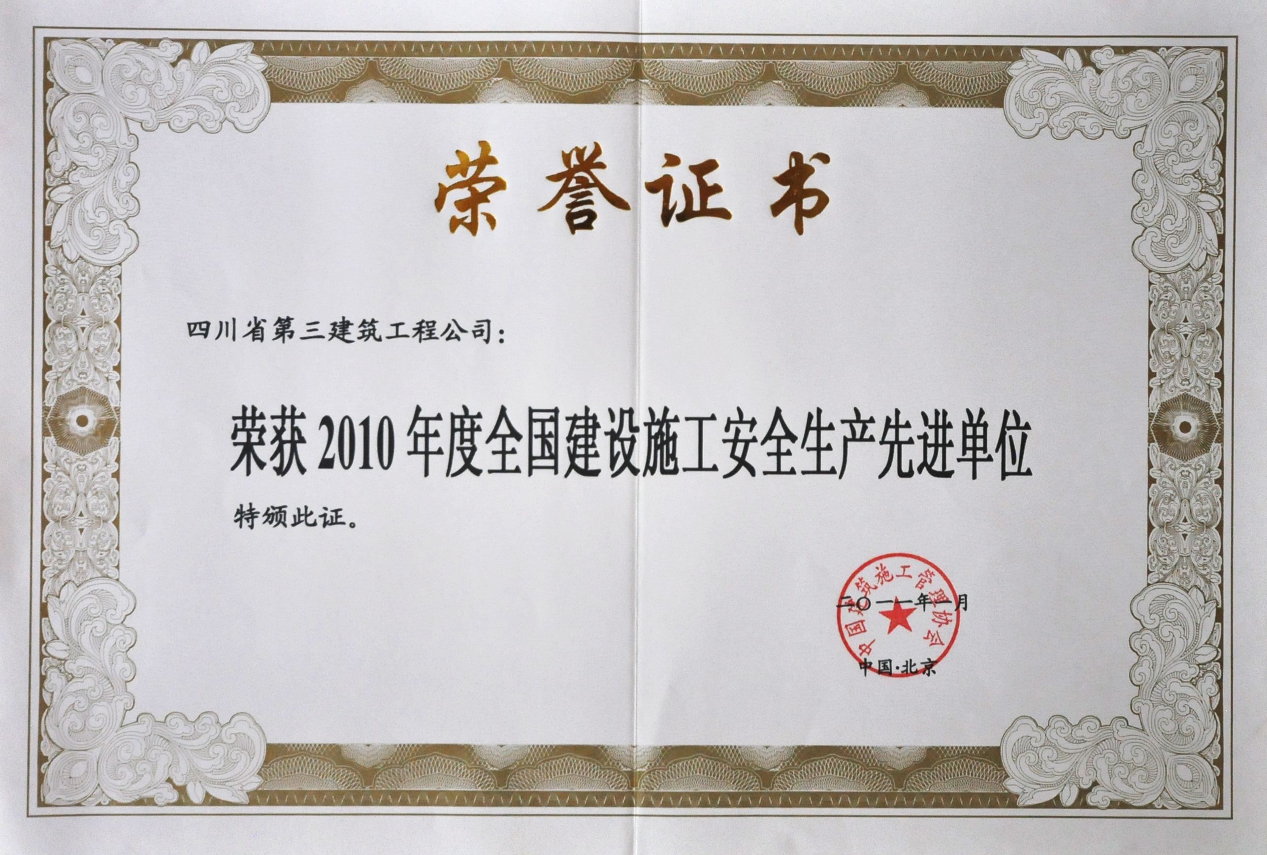 2010年度全国建设施工安全生产先进单位