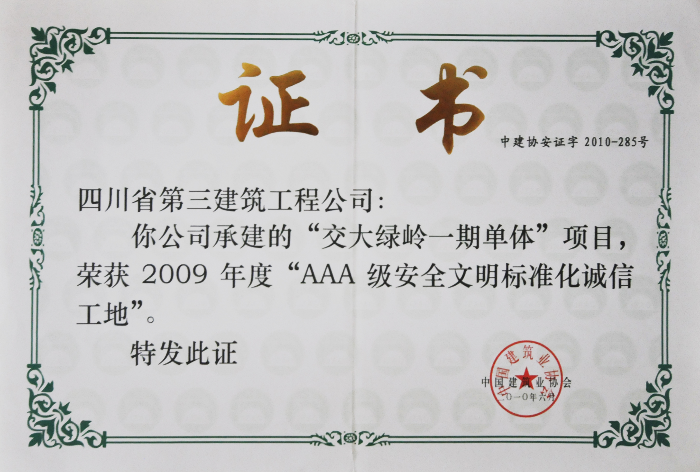 "交大绿岭一期单体"项目荣获2009年度"AA...