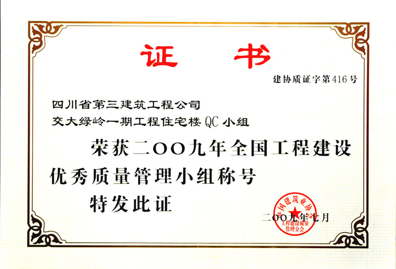 交大绿岭一期工程住宅楼QC小组,荣获200...