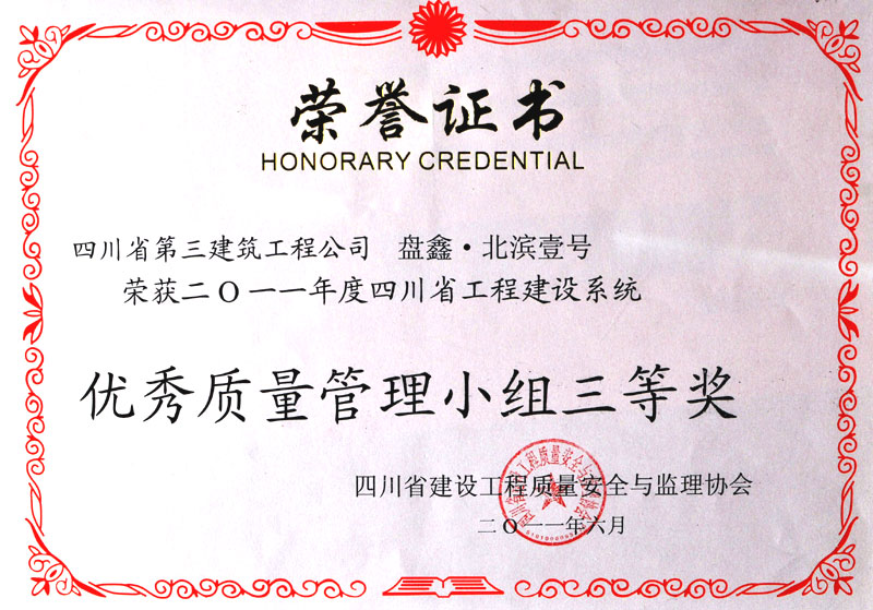 盘鑫.北滨壹号荣获2011年度四川省工程建...
