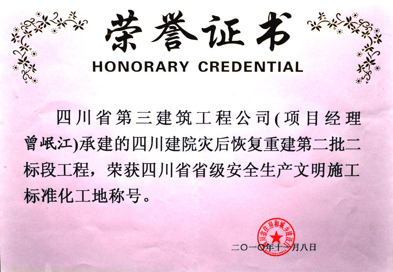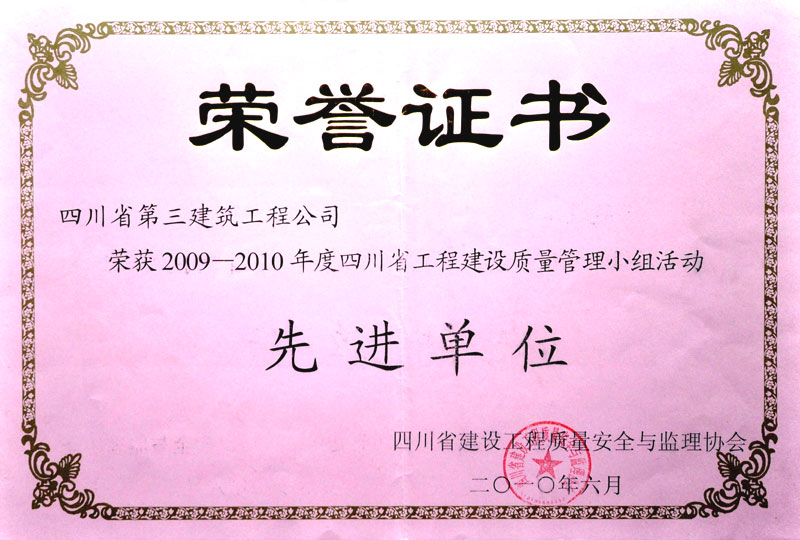 荣获2009——2010年度四川省工程建设质...