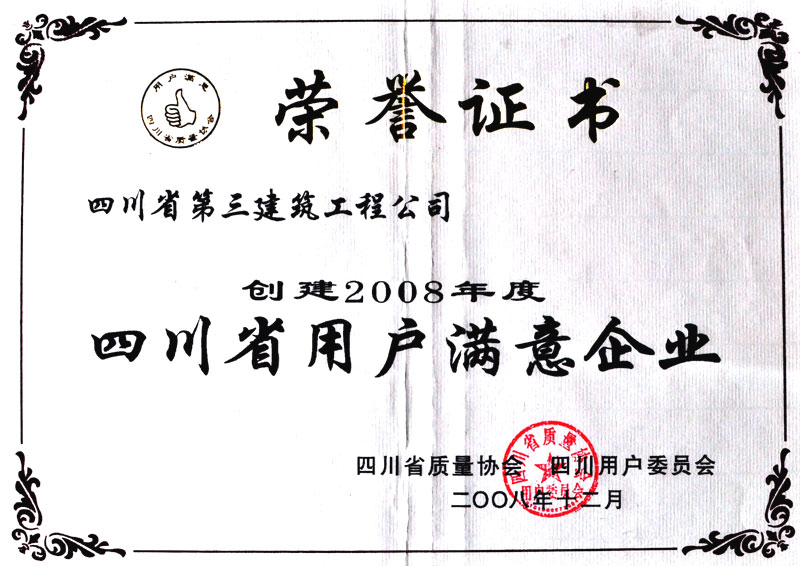 2008年度四川省用户满意企业