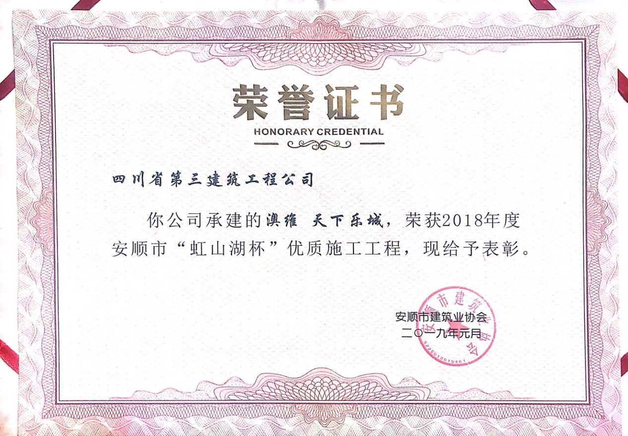 近日,由四分公司承建的澳维·天下乐城项目荣获“2018年度安顺市‘虹山湖杯’优质施工工程”称号。 该项目位于贵州省安顺市奥体中心旁,建筑面积153487.48m2,建筑高度43.9m,包含地下2层,地上9层,是一栋集商业、餐...