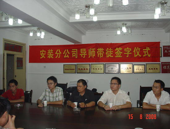 爱与呵护 ——安装分公司举行“导师带徒”签约仪式 8月15日14点30分,安装分公司隆重举行了“导师带徒”活动的签约仪式,为今年的新员工安排了老师,结成了“一帮一”对子。 为了让新员工尽快适应工作,提高业务水平...