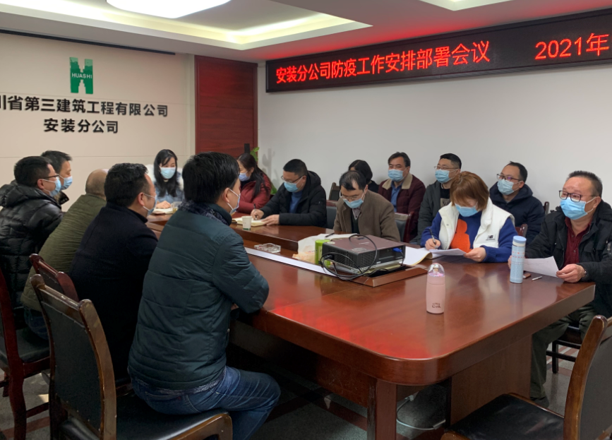 为贯彻落实四川省、集团和公司关于疫情防控工作的相关会议精神,确保安装分公司疫情防控工作这根弦紧绷不松,切实抓好节前施工现场疫情防控工作,近日,安装分公司召开防疫工作安排及部署会议。安装分公司班子成员、...