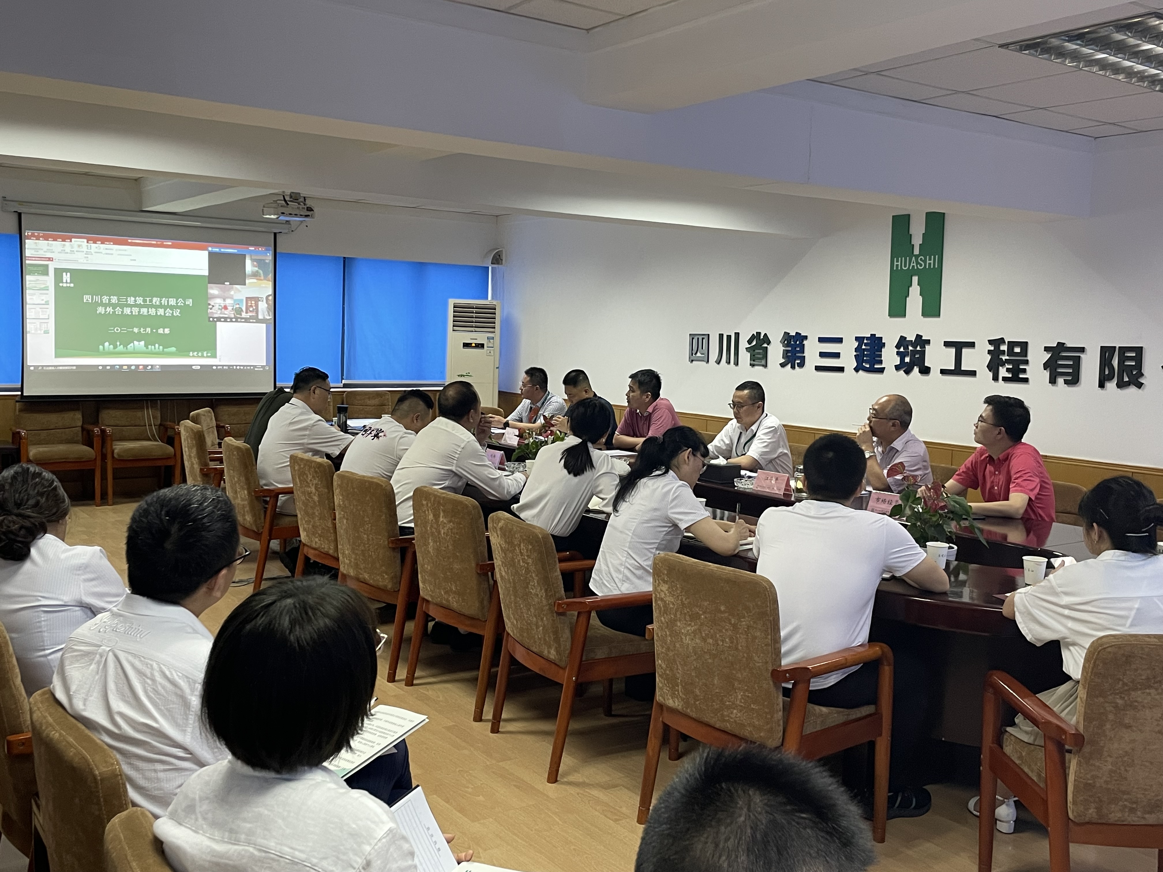 7月5日下午,公司召开海外合规管理培训会。公司党委委员、董事、总经理冯刚,副总经理倪伟,财务总监江华平出席会议,公司相关部门负责人,法律债权部全体员工,二分公司及柬埔寨公司班子成员、财务科全体员工以及柬...