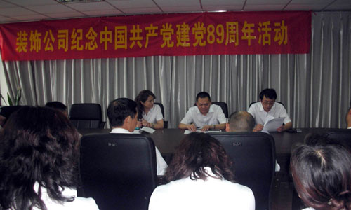 装饰公司开展纪念建党八十九周年活动 为庆祝伟大、光荣、正确的中国共产党诞辰八十九周年,回顾党的光辉历程,7月1日,装饰公司组织全体党员、中层管理干部和职工代表举行了纪念中国共产党建党八十九周年活动,热情讴...