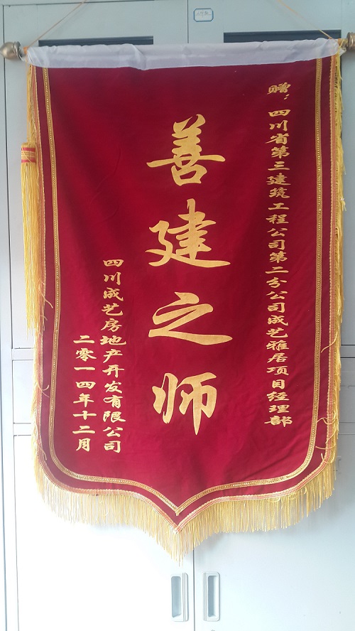 4月9日一大早,四川成艺房地产开发有限公司总经理一行三人来到了公司,亲手将一面“善建之师”的锦旗递到了公司总经理张双华的手中,口中连声称赞道:“真是没想到,成艺雅居项目整个售楼部土建施工只花了16天,而且...