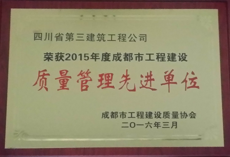 公司的质量管理工作在公司领导和部门的支持和帮助下,在全体职工的共同努力下,一直保持着稳步提升。在2015年成都市工程建设质量管理评比中,我司荣获了“2015年度成都市工程建设质量管理先进单位”称号,充分证明了...