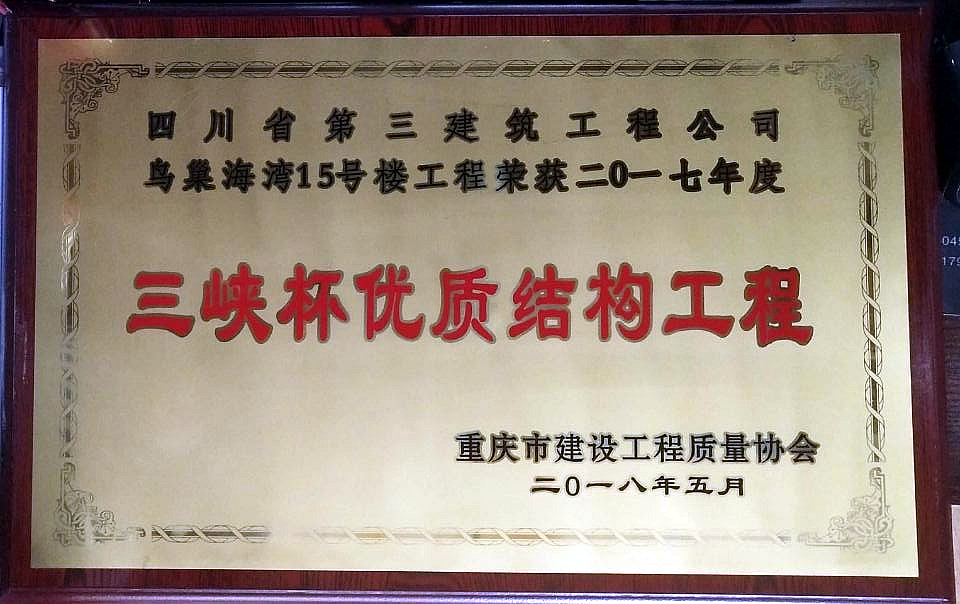 重庆分公司鸟巢·海湾项目15#楼喜获2017...