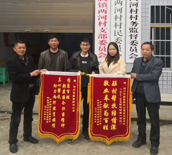 3月18日,筠连县双腾镇两河村支部书记、村主任、驻村工作队及村民代表一起,在两河村活动阵地为公司及驻村干部王亚运同志送来锦旗,感谢公司及王亚运同志三年来对两河村精准扶贫工作的大力支持。 在扶贫攻坚的道路上...