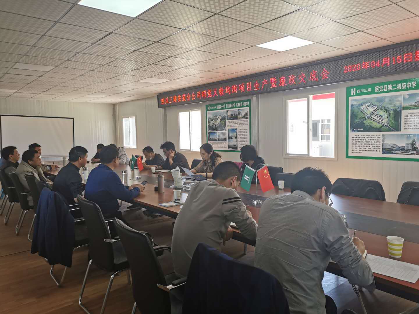4月15日,昭觉义教均衡项目安装项目部召开生产暨廉政交底会。 安装分公司党总支书记代表分公司班子向参加义教均衡项目建设的全体人员表示慰问,并结合项目实际情况,详细分析了当前形势,号召全体参战人员树立“密切...